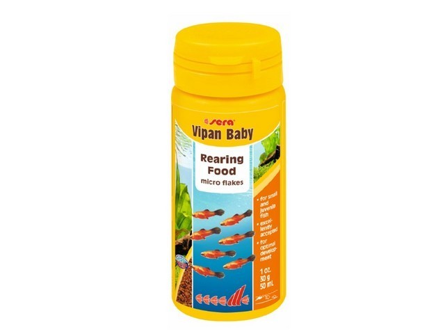 (Sera Vipan Baby 50 ml (30 g סרה ויפאן בייבי – מזון עשויי מפתיתים קטנים במיוחד, המיועד לדגיגונים ודגים קטנים כמו ניאונים. אוכל השומר על צורתו, לא מתפרק במים ולא מזהם את המים. מכיל ויטמינים ומינרלים החיוניים לבריאותו של הדג. תוצרת: גרמניה