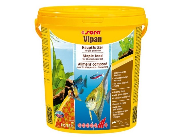 (Sera Vipan Tropical Flakes 21 liter(4 kg מזון בסיסי שלם המורכב מפתיתים צפים, מתאים לכל דגי הנוי שאוכלים על פני המים. מכיל חרקים כמקור חלבון איכותי המהווה חסכון במשאבים. התומך בצמיחה בריאה והתפתחות חזקה. הפתיתים שומרים על צורתם לאורך זמן ולא מעיבים על המים. תוצרת: גרמניה
