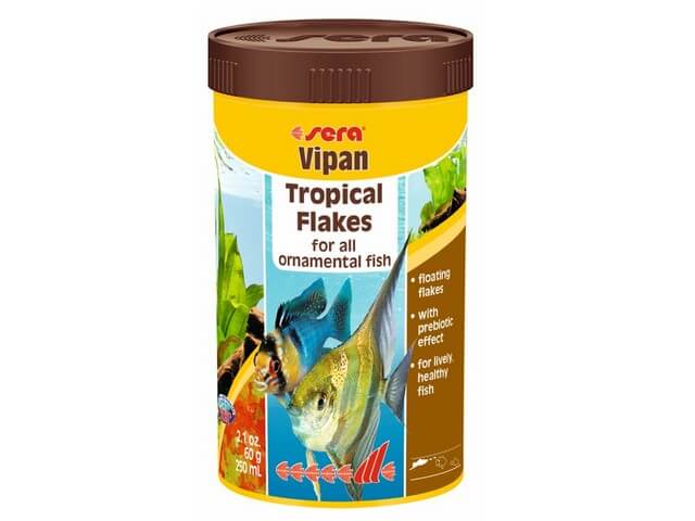 Sera Vipan 250ml סרה ויפאן הינו מזון בסיסי עשוי מפתיתים צפים. מתאים לכל דגי נוי האוכלים על פני המים. מקור החלבון – חרקים. המזון עשיר ומאוזן היטב, מכיל מינרלים וויטמינים התורמים לחיזוק המערכת החיסונית ולחיזוק צבעי הדג. תוצרת: גרמניה