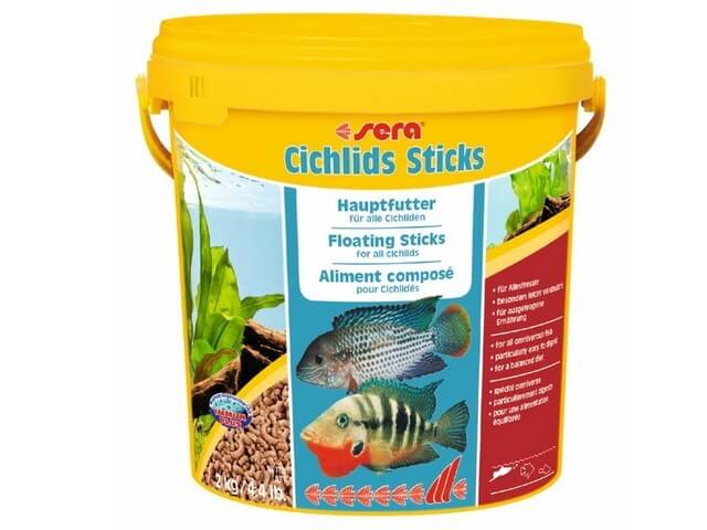 (Sera Cichlids Sticks 10 liter (2 kg מקלות סרה ציקלידים 10 ליטר – הינו מזון בסיסי מלא המורכב ממקלות המיוצרים בעדינות עבור ציקלידים ודגים גדולים אחרים. המקלות טעימים במיוחד, מכילים כמות גבוהה של חלבון מקמח דגים לעיכול אופטימלי, חרקים וחומצות שומן אומגה. התזונה המאוזנת תומכת בהתפתחות בריאה של הדגים. המקלות הצפים שומרים על צורתם ואינם מזהמים את המים. תוצרת: גרמניה