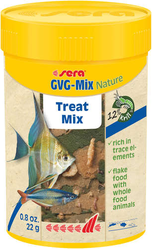 (GVG-Mix Nature 100ml(22 g / 0.8 oz מזון טבעי – ללא צבעי מאכל וחומרים משמרים, עשוי ממרכיבים טבעיים. מזון דגים מעורבב ומגורען המיועד לדגי מים מתוקים, אוכלי בשר ואוכלי כל. מועשר בשרימפסים, תולעי דם, דפניות ועוד, אשר הופכים אותו לטעים במיוחד. עשיר באצות ספירולינה, לצד מינרלים ו-ויטמינים רבים, המבטיחים את בריאותו של הדג. תוצרת: גרמניה