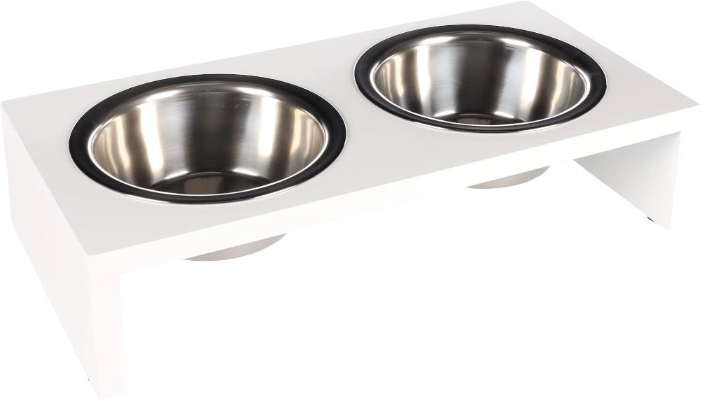 קערות אל חלד נשלפות עם בסיס עץ מוגבה. קוטר כל קערה: 13 ס"מ. גובה: 7 ס"מ.
