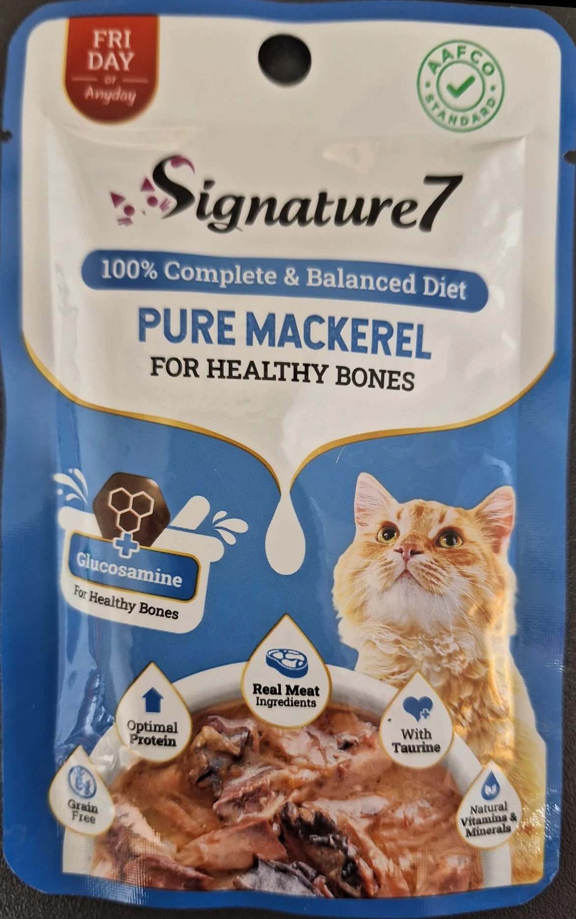 פאוץ' מבית SIGNATURE 7 בטעם מקרל, 100% מזון מלא ומאוזן לחתול, טעים, מושלם לבריאות העצמות.