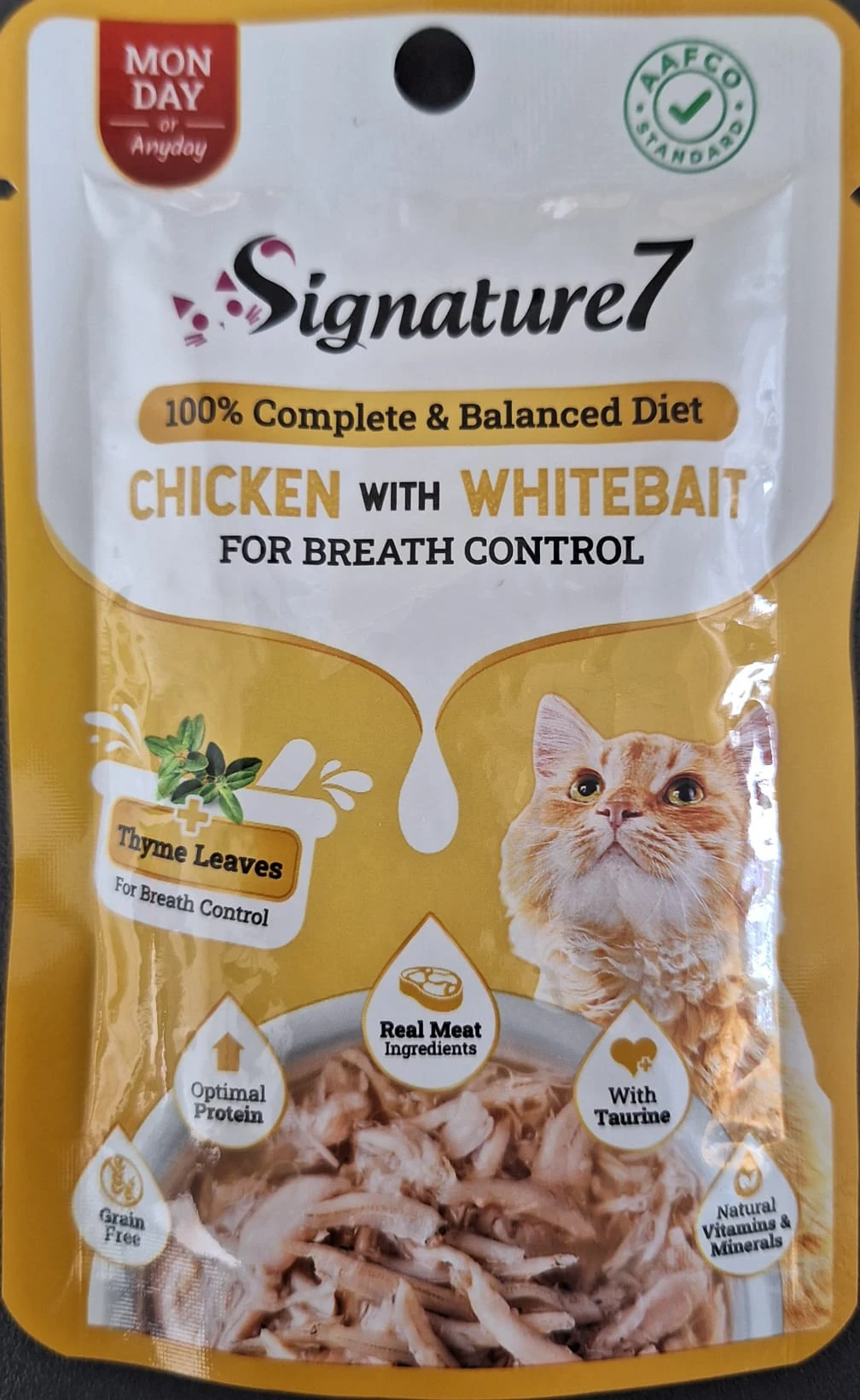 פאוץ' SIGNATURE 7 בטעם עוף ודג לבן לחתול, 100% מזון מלא ומאוזן לחתול, מכיל עוף ודג לבן. שומר על בריאות הפה ומשאיר ריח רענן בפה החתול.