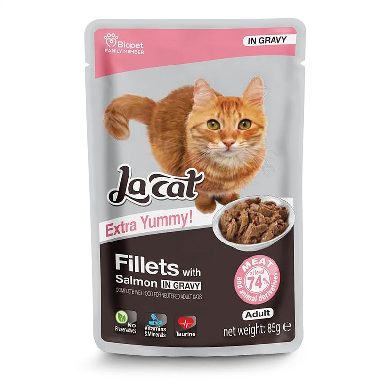 להקט פאוץ' נתחוני סלמון ברוטב, מזון לח, טעים ועשיר בשר! מיועד לחתולים מסורסים ולחתולות מעוקרות מכל הסוגים. מכיל לפחות 74% בשר טאורין המסייע בשמירה על בריאות הלב, עשיר בויטמינים ומינרלים, ללא חומרים משמרים, אריזה נוחה לשימוש. מזון לח חדשני אשר נועד לענות על צרכיו התזונתיים של החתול ובאותה עת לספק לו נוזלים ולסייע בשמירה על בריאות דרכי השתן.