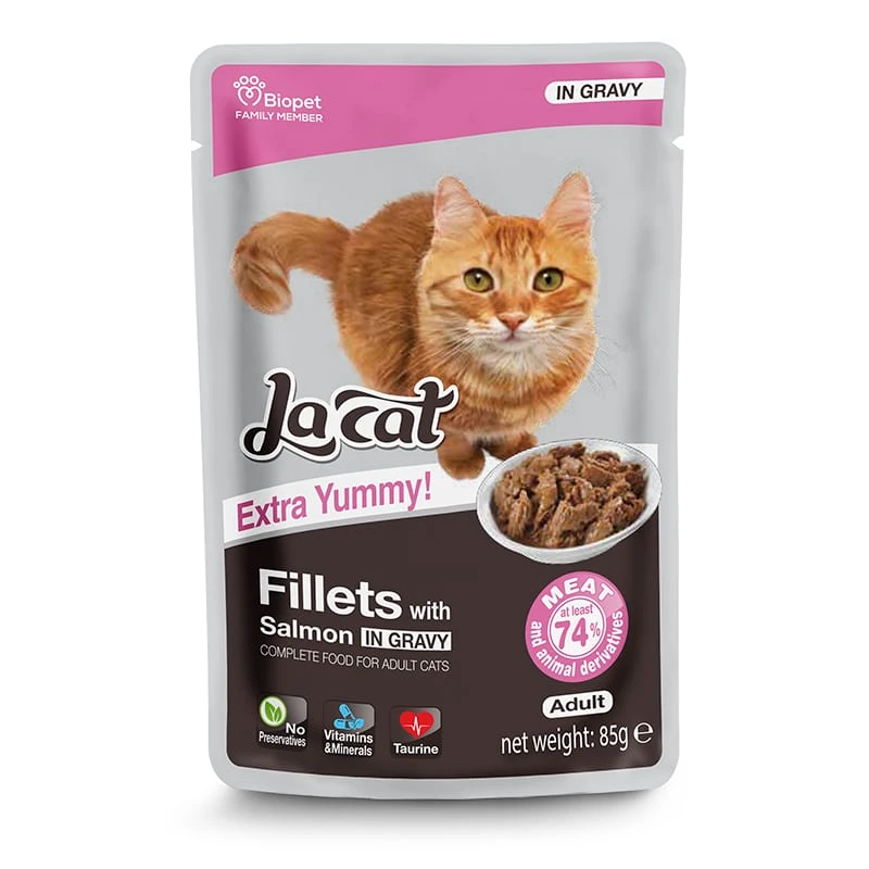 להקט פאוץ' נתחוני סלמון ברוטב, מזון לח, טעים ועשיר בשר! מיועד לחתולים בוגרים מכל הסוגים. מכיל לפחות 74% בשר טאורין המסייע בשמירה על בריאות הלב, עשיר בויטמינים ומינרלים, ללא חומרים משמרים, אריזה נוחה לשימוש. מזון לח חדשני אשר נועד לענות על צרכיו התזונתיים של החתול ובאותה עת לספק לו נוזלים ולסייע בשמירה על בריאות דרכי השתן.
