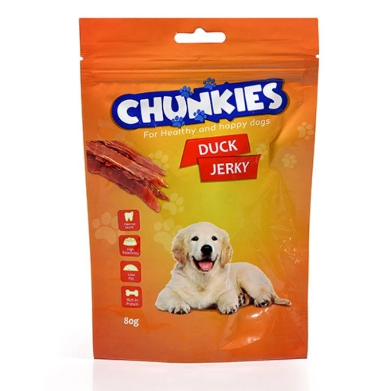 צ'אנקיז פילה ברווז 80 גרם – חטיף איכותי לכלבים העשוי מ-100% בשר ברווז. מכיל רצועות פילה עסיסיות שעברו תהליך ייבוש מבוקר תוך שמירה על הטעם והערכים התזונתיים. ללא תוספת צבעי מאכל, חומרי טעם מלאכותיים וחומרים משמרים. עשיר בחלבון גבוה, ברזל, אבץ וויטמינים מקבוצה B. המרקם הרך והגמיש מתאים במיוחד לגורים או לכלבים מבוגרים בעלי חניכיים רגישות. ארוז בשקית אטומה עם אפשרות לסגירה חוזרת השומרת על טריות החטיף.