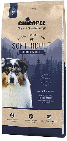 צ`יקופי כלב בוגר סופט סלמון ואורז 2 ק"גChicopee צ'יקופי 15 ק"ג מזון יבש רך לכלבים בוגרים בטעם סלמון ואורזאיכותי, תוצרת גרמניה ומותאם לכל הדרישות של כלבים בוגרים פעילים