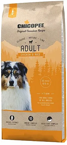 Chicopee צ`יקופי מזון יבש לכלב בוגר עוף ואורז 15 ק"גצ’יקופי – מזון כלבים יבש מלא ומאוזן לכלבים בוגרים על בסיס עוףמותאם לגזע בינוני ברמת פעילות ממוצעת