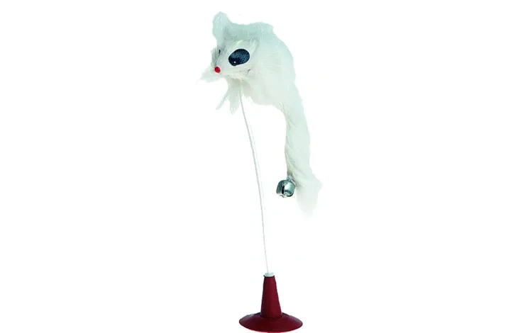 מוט עם עכבר קטיפה ופעמון אש נדבק לרצפה.