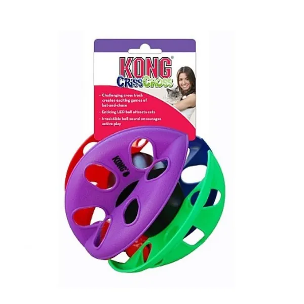 קונג קריסקרוס משחק כדור לחתולKONG CA416 CrissCrossקונג קריס קרוס כדור צעצוע אינטראקטיבי עם אור לחתול דגם קונג היא חברה המתמחה בצעצועים לחיות מחמד, ומשיקה לנו מוצרים איכותיים העמידים לאורך זמן. קונג ייצרה כדור משחק, המאתגר את מוח החתול, ומגרה אצלו את ייצר הצייד. הכדור גורם לתנועתיות ותזוזות אצל החתול, ובכך שומר עליו פעיל ובריא. המשחק יכול להעסיק את החתול שלכם המון זמן. הכדור מכיל בתוכו כדורי אור מפלסטיק המאירים בצורת לד ומושכים את תשומת לב החתול ובנוסף צלילי פעמון המפתים את החתול למשחק ממושך בכדור.