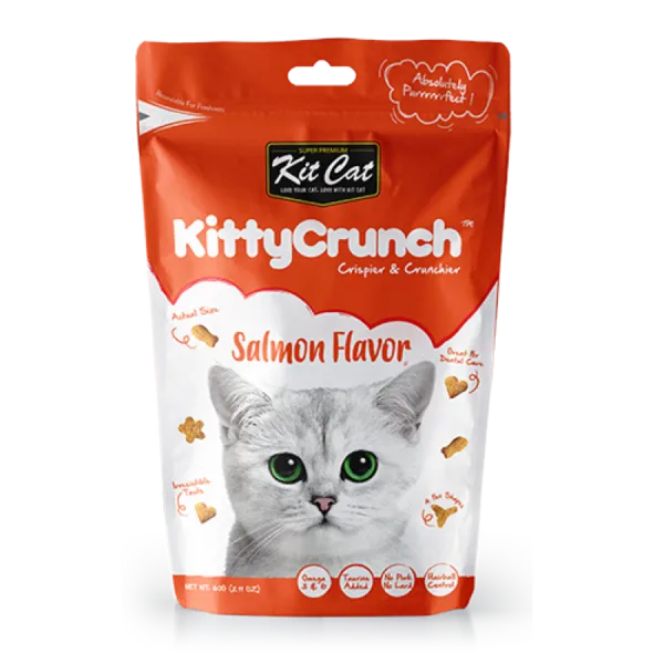 קיט קאט חטיף קראנצ'יקיט קאט קיטי קראנץ' נוצר על ידי תזונאים שהם אוהבי חתולים ועשויים עם טוב של מרכיבים שנבחרו בקפידה.KittyCrunch מיוצר לשלמות עבור חתולים. עם מגוון טעמים טעימים ו-4 צורות מהנות, הנגיסות הפריכות שאי אפשר לעמוד בפניהן הן לא רק טעימות אלא גם עוזרות לנקות שיניים.מגיע ב-6 טעמים דלי מיאו!קמח גלוטן תירס, תירס, אורז, קמח דגים, קמח עופות, הידרוליזט חלבון סלמון, שומן עופות, חלבון מהחי (בטעם סלמון), חלבון, דקל סטיארין, שמרים מיובשים, מלח, כולין כלוריד, דיקלציום פוספט, תוסף ויטמינים חיוניים ( ויטמין A, ויטמין D3, ויטמין E, ויטמין K3, ויטמין B1, ויטמין B2, ויטמין B6, ויטמין B12, חומצה ניקוטינית, חומצה פנטותנית, חומצה פולית, ביוטין) תוסף מינרלים חיוניים (נחושת, ברזל, מנגן, אבץ, יוד, סלניום), שמן פרחי שמש, שמן סלמון, סיבים אכילים (צלולוזה), אשלגן כלורי, חומר טעם (טעם טונה), חומר משמר (חומצה פרופיונית, ויטמין C, ויטמין E), טאורין, אוליגוסכריד פרוקטו.