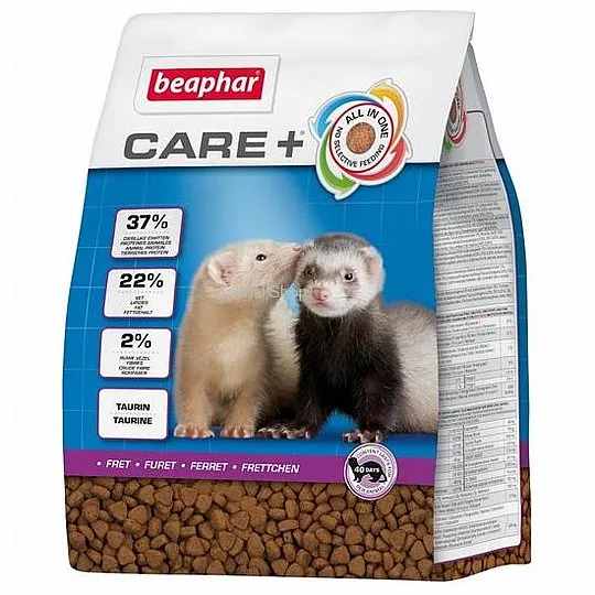 קר פלוס ביהפר הוא אוכל כופתיות לחמוס ברמת סופר פרימיום טעים ביותר ובעל איזון תזונתי אשר פותח בשיתוף עם תזונאים ווטרינרים מובילים ומומחי חמוסים. קייר+ מכיל כמות שומן מועטה ומועשר באומגה 3 ו6 יחד עם ספירולינה. מכיל ויטמין E לשמירה על בריאות תאי הגוף ומינרלים בעלי ספיגה מוגברת. בתוספת פרוביוטיקה לשיפור תהליכי העיכול. מכיל תמצית יוקה לצמצום נפח וריח הצואה. מזון כופתיות מומלץ יותר מתערובת, כך החמוס אינו יכול לברור בין המרכיבים ולקבל תזונה מלאה. תוצרת ביהפר הולנד. CARE+ Extruded Ferret Food.