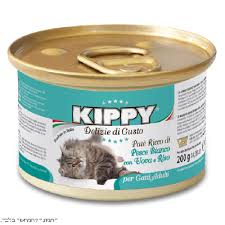 Kippy Pate Ricco di Pesce Bianco con Vova e Riso קיפי מעדן פטה בקלה|ביצים|אורז – שימורים עשירים בבשר בקלה, לחתולים בוגרים. שימורי מעדן KIPPY (קיפי)בקלה|ביצים|אורז, 200 גרם – ללא דגנים, ללא צבעי מאכל, ללא חומרים משמרים או משפרי טעם. בהכנה משתמשים במתכון המאפשר לשמור על כמות גדולה של מינרלים וויטמינים שחיית המחמד זקוקה לה. קיפי פטה הוא מעדן טעים במיוחד, שאף חתול לא יכול לעמוד בפניו. תוצרת: איטליה