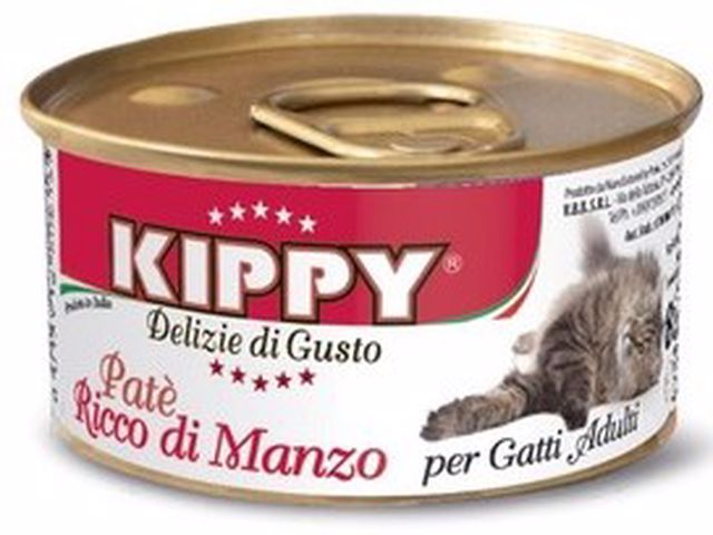 Kippy Pate Ricco di Manzo מעדן קיפי פטה בקר – שימורים איכותיים לחתולים בוגרים, עם 20% בקר. תוצרת: איטליה