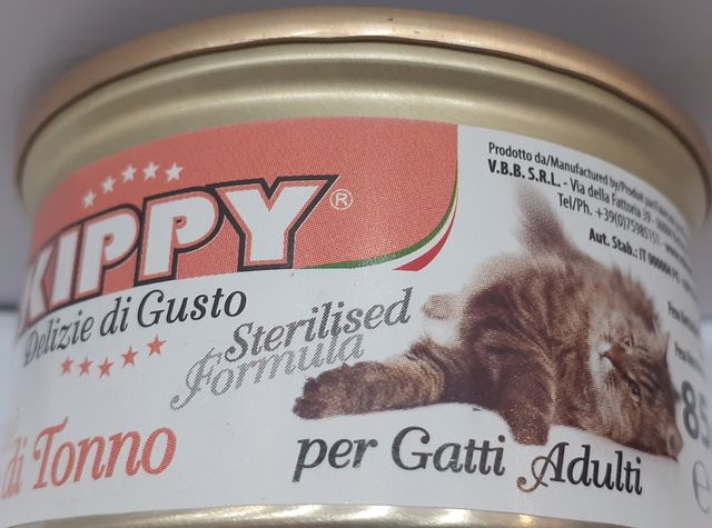 Kippy Pate Ricco di Tonno for Sterilized Cats(85g) מעדן קיפי פטה טונה – שימורים איכותיים לחתולים מסורסים, עם 30% טונה. תוצרת: איטליה