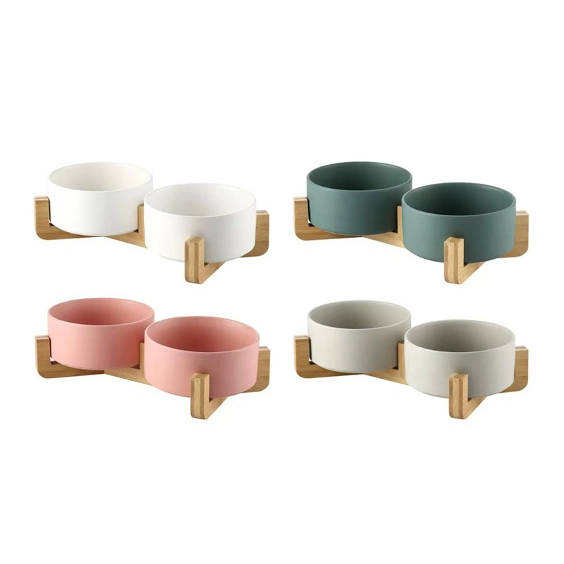קערת חרסינה כפולה עם בסיס עץ