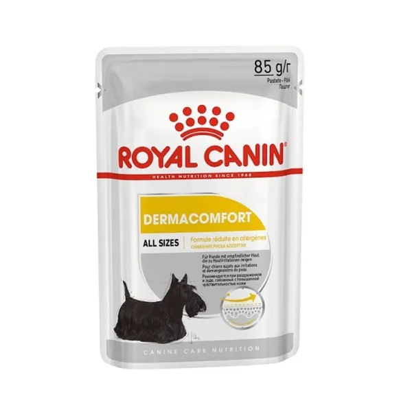 תמכו בעור בריאנוסחה תזונתית עם מקור חלבון מדויק ואיכותי כדי לעזור לתמוך ולהזין את עורו.תיאור רגישותעור הכלב מגיב לחומרים מגרים תזונתיים, עונתיים וסביבתיים. גירוד רב מדי עלול להזיק לעור שלו ולשבש את מחסום העור המגן שלו.תוכנית תזונה לטיפול בכלביםמתן תזונה בריאה ומאוזנת עם השילוב המושלם של הנוסחאות היבשות והרטובות שלנו.אם אתה מבחין שהכלב שלך מגרד יתר על המידה, זה יכול להיות בגלל רגישות בעור. העור של הכלב שלך הוא האיבר הגדול ביותר שלו, ויחד עם הפרווה שלו, הוא מהווה כ-12% ממשקל גופו כולו. העור משמש מחסום הגנה, המסייע להגן על גופו של הכלב שלך מפני פציעות ואיומים חיצוניים – כמו חיידקים וטפילים מזיקים. זה גם מכיל את קצות העצבים הרגישים שלהם ועוזר לווסת את טמפרטורת הגוף שלהם. זו הסיבה ששמירה על עור הכלב שלך במצב טוב היא הכרחית בכל הנוגע לתמיכה בבריאות וברווחה הכללית. התזונה הנכונה צריכה להכיל חומרים מזינים המסייעים להרגעת העור, תוך תמיכה בבריאות הפרווה המלאה והבריאה של כלבכם. ROYAL CANIN® Dermacomfort Loaf עוצב במיוחד עם הצרכים התזונתיים של כלבים עם רגישות לעור. מוצר זה מתאים לכלבים בוגרים מכל הגזעים והגדלים. מזון זה מכיל חלבון באיכות גבוהה ממקורות שנבחרו בקפידה. כדי להקל על מערכת העיכול של כלבכם לספוג את החלבון, אנו מקפידים על עיכול גבוה לתוצאות מיטביות בהזנת עור הכלב שלכם. ב-ROYAL CANIN®, כל מה שאנחנו עושים מונע על ידי התשוקה שלנו לבריאות חיית המחמד. מגוון תזונת הכלבים שלנו הוא תוצאה של עשרות שנים של מחקר מדעי מתקדם לפיתוח תזונה טעימה לכלבים שתומכת גם בבריאות הכלב שלך. כיכר פאטה רטובה זו זמינה באריזות של 85 גר'. כדי לספק את העדפתו של כל כלב, ROYAL CANIN® Dermacomfort זמין גם כמזון יבש עם מאכל פריך. מגוון תזונת הכלבים שלנו מספק איזון בריא של חומרים מזינים בנוסחאות יבשות ורטובות כאחד. כשאתה מאכיל את הכלב שלך בתערובת של מזון רטוב ויבש, הקפד להשתמש בהנחיות ההאכלה כדי להבטיח שאתה מספק לכלב כמויות מדויקות של כל אחד.קישור לאתר יצרן : לחץ כאן