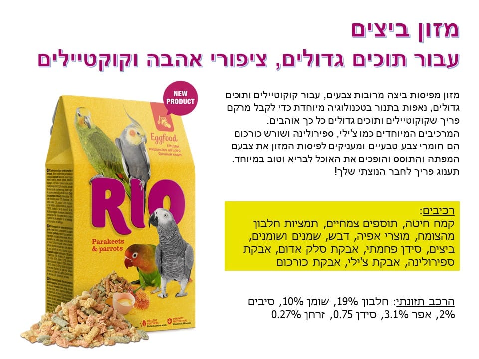 ריו 21200 – מזון ביצים לתוכי דררות, תוכים בינוניים וקטנים, 250 גרם