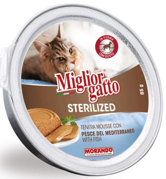 שימורים לחתול מסורס,Migliorgatto, מוס בטעם דגים 85 גר'