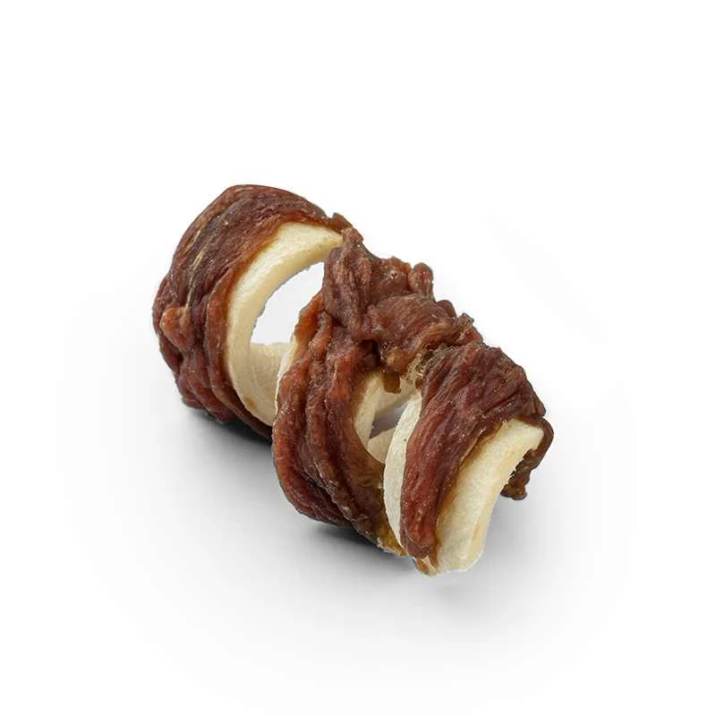 חטיף ספירלה בציפוי ברווז הינו נשנוש זמין, בריא, עתיר חלבון ודל שומן. החטיף אינו מכיל צבעי מאכל. בשר הברווז הטבעי צלוי בקפדנות ומעניק לחטיף ארומה עשירה וטעימות גבוהה. מומלץ לתת בין ארוחות או כפרס. הוראות הזנה: מיועד לכלבים מעל גיל 9 חודשים ו-6 ק"ג. יחידה אחת ליום. מומלץ להשגיח על הכלב בזמן האכילה. יש לוודא שהכלב מסוגל ללעוס את המוצר, בליעת המוצר ללא לעיסה עלולה להיות מסוכנת. יש לספק מים טריים לצד המזון.