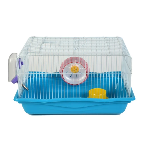 Dayang. כלוב מאובזר לאוגרים ומכרסמים קטנים. עשוי פלסטיק קשיח ורשתות מתכת מגולוונת. כולל גלגל משחק, מבחנת שתייה וכלי למזון. רוחב: 45 ס"מ, עומק: 30 ס"מ, גובה: 25 ס"מ.