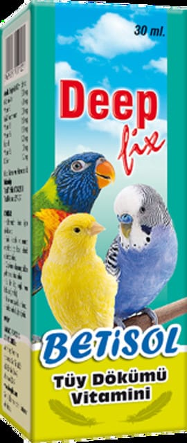 Bio PetActive DF103 Betisol(Vitamin for Moulting) 30ml ביו פטאקטיב DF103 בטיסול – מספק ויטמינים B הנחוצים לקנרים, תוכים מכל המינים, פינקים. התוסף מסייע ומחזק בעונת נשירה, מחזק את מערכת העצבים ומקל תופעת "סטרס", מחזק גוונים צבעים, מגדיל את סיכויי הגוזל, תומך בהתפתחות ציפורים צעירות, עוזר במצב של חוסר תאבון. טיפות הינן בטוחות לשימוש.