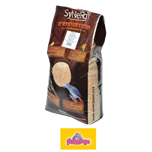 Flamingo. מיועד לתוכי ג'קו ותוכים גדולים. אריזת 20 ק"ג. חלבון 13%, שומן 11%, תאית 13%, רטיבות מקס' 10%, אפר 5%, חומצות אמינו, מינרלים, ויטמינים E.D.A   שיבולת שועל, חמניה, תירס, חיטה, דורה, אפונה, בוטנים, שלוה, אגוזים.
