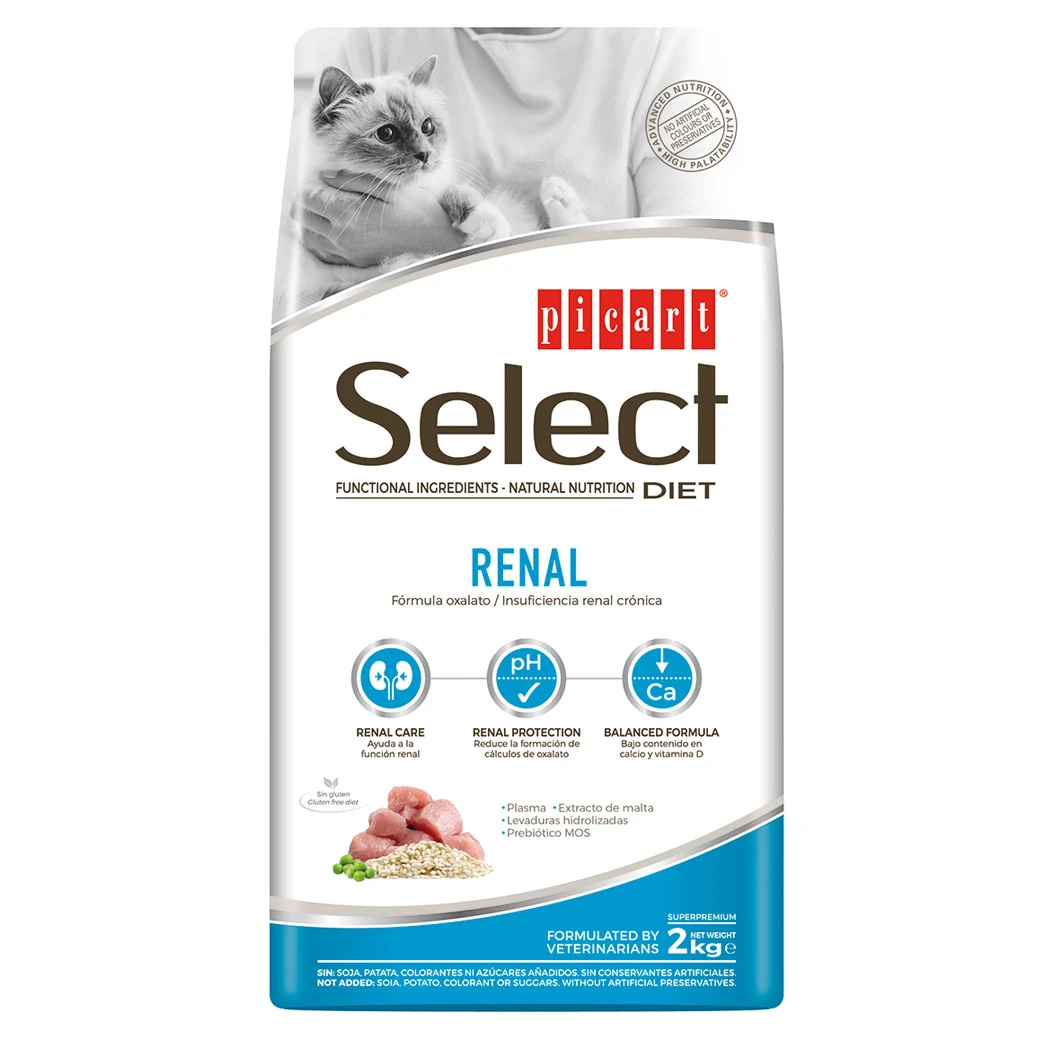המזון נועד לחתולים בוגרים לשמירה על בריאות הכליות ולתמיכה במקרים של כשל כליות כרוני. כמו כן מסייע במניעה של אבנים וקריסטלים בשתן מסוג Oxalate הגורמים לדלקות בדרכי השתן. המוצר אינו מכיל סויה, תפוחי אדמה, צבעי מאכל או תוספי סוכר. מומלץ להיוועץ בווטרינר. . תוצרת ספרד. אריזות: 10,2 ק"ג תכולה תזונתית באחוזים: חלבון גולמי: 26, שומן גולמי: 17, אפר גולמי: 3.5, סיבים גולמיים: 6, לחות: 8, סידן: 0.8, זרחן: 0.5, נתרן: 0.25, מגנזיום: 0.07 , אשלגן: 0.8, כלור: 0.9, גופרית: 0.2, ויטמין D: 500 יח'ק"ג, חומצה לינולאית: 3.2%, EPA+DHA : 0.2%, טאורין: 1580 מ"גק"ג. תוספים תזונתיים לק"ג: ויטמין A: 30,000 יח"ב, ויטמין D3: 600 יח"ב, ויטמין E: 110 מ"ג, נחושת: 10 מ"ג, אבץ: 80 מ"ג, ברזל: 25 מ"ג, סלניום: 0.3 מ"ג, מנגן: 12 מ"ג, יוד: 1 מ"ג, מתיונין: 500 מ"ג. נוגדי חמצון: טוקופרול. חמרי טעם: תמצית רוזמרין: 0.14%. רכיבים: אורז*, חלבון תירס,* חלבון עוף מיובש*, שומן עוף*, עוף מעובד, בשר עוף מיובש* חלבוני פלזמה*, מינרלים, סיב אפונה*, שמן דגים*, שמרים, לתת, פרהביוטיקה MOS, ויטמינים, טריפוטסיום ציטראט 0.4% (חומר מבסיס שתן).